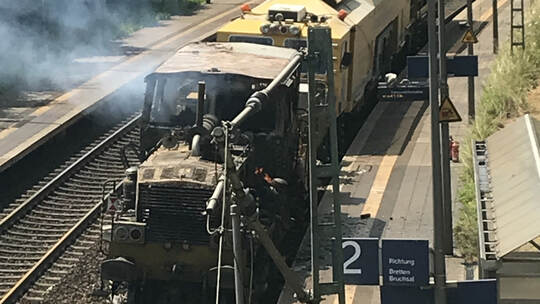 Schon wieder hat ein Arbeitszug der Deutschen Bahn gebrannt! Am Dienstagmittag hat die Lok Feuer gefangen und ist komplett ausgebrannt. Die Gleisbaumaschine stand im S-Bahnhof Ölbronn-Dürrn. Die Feuerwehr ist mit einem großen Aufgebot mit 48 Kräften angerückt.