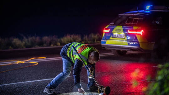 Um 2.10 Uhr hatte der Ford-Fahrer die vierköpfige Fußgängergruppe erfasst. Den bisherigen Ermittlungen der Polizei zufolge waren die Fußgänger vermutlich von einer nahegelegenen Tankstelle kommend am Fahrbahnrand der L1125 auf dem Weg nach Sachsenheim und wurden dabei von dem aus Richtung Bietigheim heranfahrenden Unbekannten von hinten erfasst. Der 21-Jährige wurde durch die Luft und gegen einen angrenzenden Metallzaun geschleudert und zog sich dabei tödliche Verletzungen zu.
