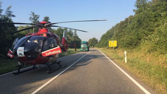 Derzeit ist ein Rettungshubschrauber auf der voll gesperrten B10 im Einsatz.