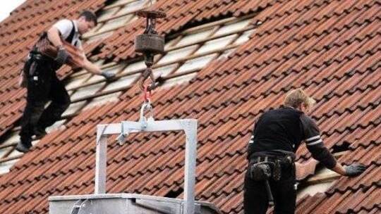 Erst als beim Bürgerhaus in der Taunus-Gemeinde Hettenhain schon rund 100 Quadratmeter des Daches abgedeckt waren (Symbolbild), stellten die Arbeiter fest, dass sie auf dem falschen Gebäude zu Werke waren