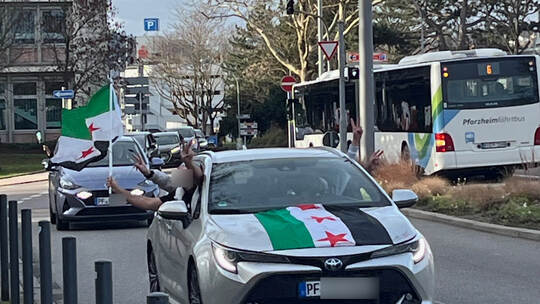 Pforzheim. Seit dem späten Vormittag an diesem Sonntag künden hupende Autos in der Pforzheimer Innenstadt vom Sturz des syrischen Machthabers Baschar al-Assad: Geschmückt mit syrischen Fahnen und besetzt mit überwiegend jungen Menschen feiert dieser Korso von zwei, drei Dutzend Fahrzeugen die Entwicklung in Damaskus als Befreiung.