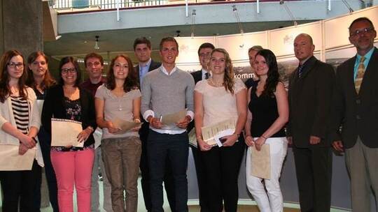 Neben der Basisausbildung konnten 24 Industriekaufleute die Zusatzqualifikation zum Außenhandelsassistenten, 36 Bankkaufleute zum Finanzassistenten und 85 Immobilienkaufleute zum Immobilienassistenten erfolgreich ablegen. Die Sonderpreise für die einzelnen Branchen gestiftet von Unternehmen erhielten Miriam Koch und Jasmin Störzenecker (Bank); Laura-Marie Fontana, Valerie Holzhäuer, Rebecca Schumann und Stefan Walter (Industrie). Die Preise der Unternehmen aus der Immobilienwirtschaft erhielten Alexander Bappert, Anja Holzhauer, Jennifer Keller, Mellissa Leitenberger, Dominik Leitgieb, Verena Maier, Claudius Rösch, Alexander Rommel, Lena Seidel, Yara Speitmann und Patrick Sinz.