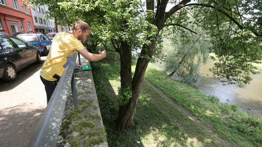 Die Geschädigte beschrieb den Täter als etwa 30 bis 40 Jahre alt, 1,80 Meter groß mit dunklerem Teint und kurzem, dunklen Haar. Er sei von normaler Statur, habe eine dunkle Hose mit dunklem T-Shirt getragen und deutsch mit ausländischem Akzent gesprochen. Der Vorfall ereignete sich zwischen Theaterstraße und Auerbrücke.