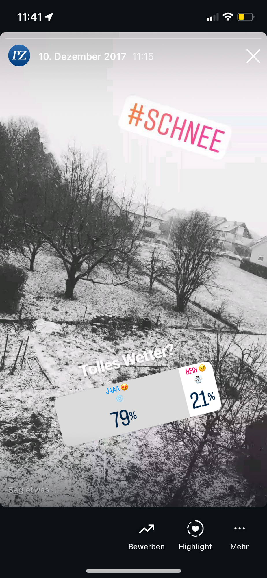 Als der Instagram-Boom in Deutschland begann, war für die damalige Online-Redaktion schnell klar: „Wir müssen da mitmachen“, erinnert sich Nina Tschan, heutige Leiterin Digitales. „Es war schon immer unsere Herangehensweise, auf Social Media Dinge auszuprobieren – schließlich möchten wir als Redaktion dort sein, wo unsere Leserinnen und Leser, Userinnen und User sind.“ Da gehörte die Plattform, die inzwischen zum US-Konzern Meta gehört, eindeutig dazu. Auf Facebook war PZ-news zu dem Zeitpunkt bereits eine Institution in der Region, auf Snapchat war die Redaktion ebenfalls unterwegs.