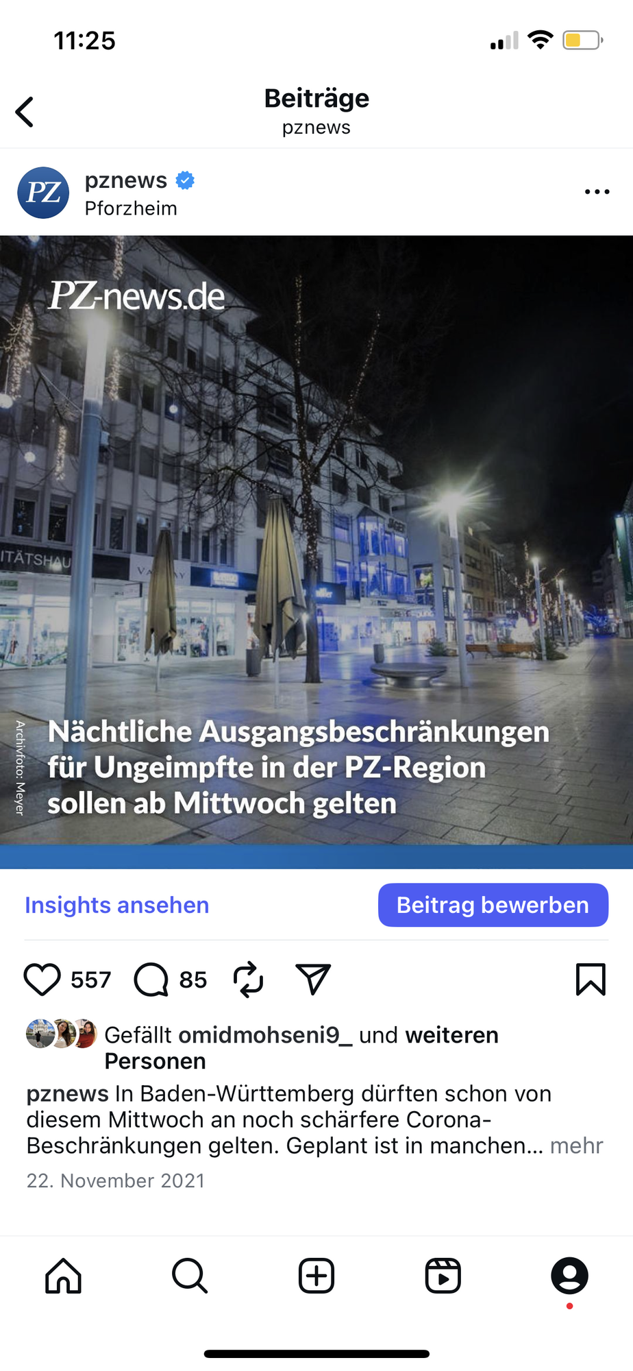 Julia Falk, Redakteurin: „Wie sehr ein Virus namens Corona das Land und die Gesellschaft spalten würde, war nach kurzer Zeit beim Blick in unsere Kommentarspalten auch auf Instagram schon klar. Jede Story und jeder Beitrag zu neuen Regeln, Ausgangssperren und Entscheidungen der Politik führte zu einer Flut von Meinungen. Wer frühmorgens bei PZ-news die Frühschicht hatte, wurde nicht selten mit müden Augen von bis zu 500 Kommentaren, die es gemäß der Netiquette zu prüfen galt, erwartet. Ich bin froh, dass diese Zeiten vorbei sind – nicht nur wegen des überfüllten Postfachs unseres Managements-Tools für Social Media.“