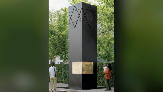 So soll die Stele neben dem Kreisverkehr an der Güterstraße/Anshelmstraße aussehen. Sichtbeton in Anthrazit mit einer Infotafel.