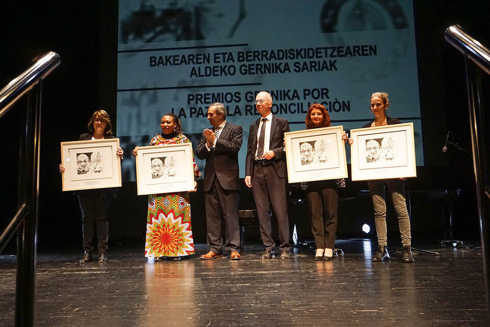 Die Women's International League for Peace and Freedom ist eine internationale nichtstaatliche Organisation, die älteste internationale Frauen-Friedensorganisation der Welt. In seiner Rede ging Gernikas Oberbürgermeister José María Gorroño auf den Krieg in der Ukraine ein und wies auf die vielen bewaffneten Konflikte in der Welt hin. Er betonte, dass es einer allumfassenden Ethik bedürfe, die das Zusammenleben der Menschen und die Einhaltung der Menschenrechte sichere.