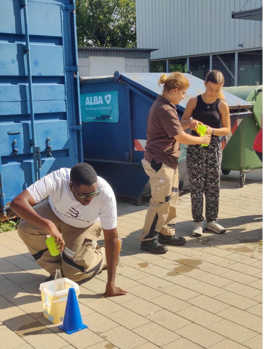 Zudem stand der Besuch bei der Lebenshilfe Pforzheim Enzkreis auf dem Programm – einem Verein, der Unterstützung in verschiedensten Bereichen des Alltags bietet. Die Schüler informierten sich über soziale Ausbildungsberufe wie Heilerziehungspflege, Heilerziehungsassistent, Erzieher sowie den dualen Studiengang Soziale Arbeit. Sie bekamen Einblicke in unterschiedliche Arbeitsbereiche der Lebenshilfe, in denen Menschen mit Behinderungen unterstützt werden und selbst arbeiten. Dazu gehören der Berufsbildungsbereich, verschiedene Werkstätten, die Cafeteria und die Wohnräume. Um mit Mitarbeitern mit Behinderung in Kontakt zu kommen, wurde ein Wasserspiel vorbereitet, bei dem die Schüler gemeinsam mit den Mitarbeitenden im Team spielten.