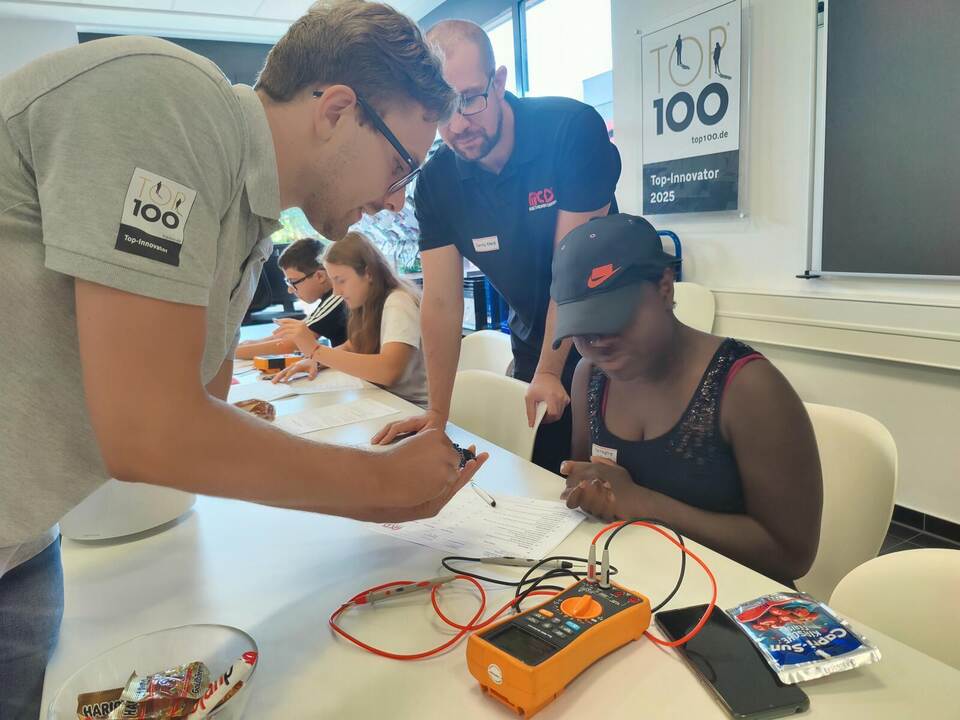 Am darauffolgenden Tag besuchten die Schüler das Unternehmen MCD Elektronik GmbH – ein Unternehmen, das weltweit Kunden mit komplexer Test- und Automatisierungstechnik beliefert. MCD bietet sowohl duale Studiengänge (Elektrotechnik, Angewandte Informatik und BWL – International Business) als auch Ausbildungsberufe (Groß- und Außenhandelsmanagement, Fachinformatiker für Systemintegration sowie Elektroniker für Geräte und Systeme) an. Anhand eines Prüfprotokolls werteten die Schüler die elektrischen und optischen Eigenschaften eines kleinen Einplatinenroboters aus. Beim Firmenrundgang wurden die Abteilungen besichtigt und Roboter sowie Testsysteme gezeigt und demonstriert – ein gelungener Abschluss der „Offen für morgen“-Woche.