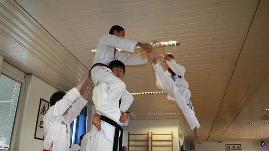 Die älteren Taekwondo-Sportler bewiesen ihr Können im Leicht- und Vollkontakt, letzteres ein Zweikampf-Modus, welcher auch bei Olympia ausgetragen wird. Nicht minder beliebt war das Bretter zerschlagen, bei der stets eine Raunen durchs Publikum ging, wenn ein Athletbeispielsweise im Kampfsprung mehrere Meter überwindete, um sein Ziel zu treffen.