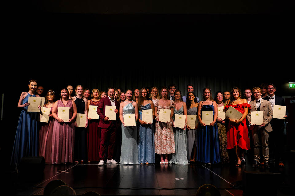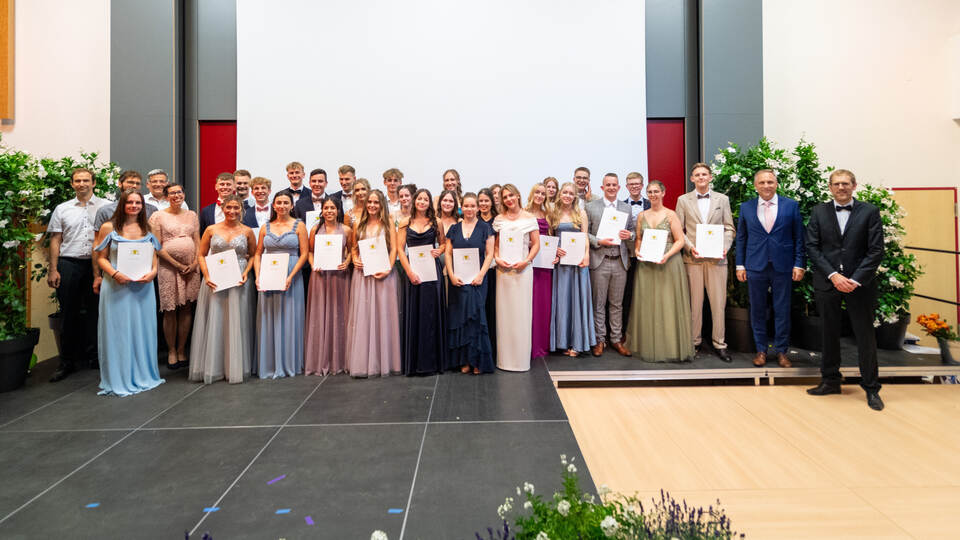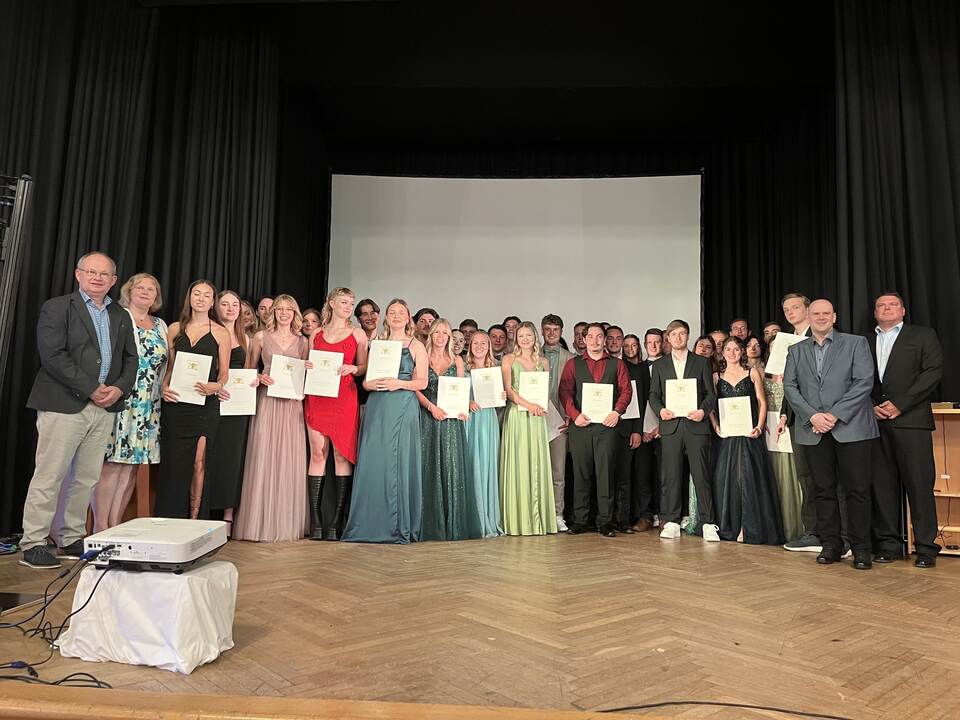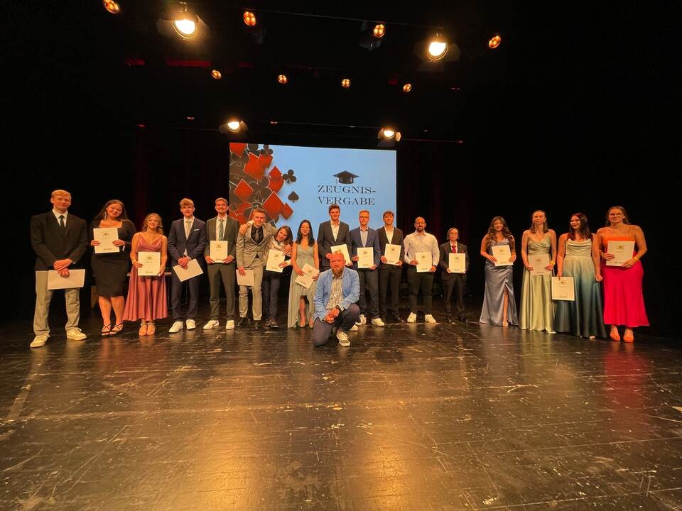 Schulpreisträger mit einem Abiturdurchschnitt bis 1,5: (1,0) Ole Michaelis, (1,1) Ella Brambeer, (1,2) Jennifer Stürz, Lukas Schran, (1,3) Jakob Haas, Katharina Wetzel, (1,4) Susanne Zimmermann, Marlene Paskarbeit, (1,5) Annelie Bihlmaier, Schulsozialpreis: Arne Michaelis.