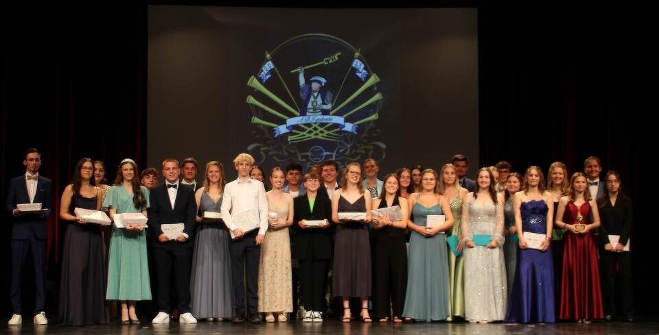 Für langjähriges Engagement im Chor, im Orchester und in der Bigband erhalten eine Anerkennung: Malin Bechtold, Tom Decker, Marlena Elsässer, Josefine Fuchs, Leonie Netzeband, Johanna Schünhof, Victoria Schünhof, Svenja Winkler;