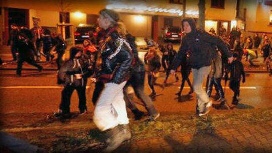 20.20 Uhr: Rund 50 Anhänger der Antifa ziehen über die Kreuzsteinallee in Richtung Innenstadt.