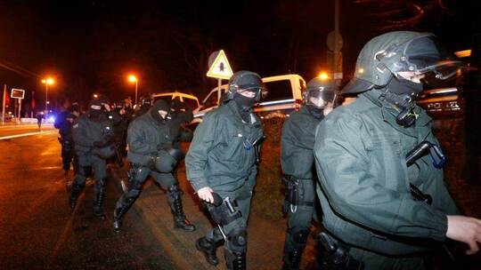 Einsatzkräfte von ca.150 Maskierten an Absperrung angegriffen-Polizei musste unmittelbaren Zwang anwenden #Polizei#Karlsruhe#nnpf#PF2302