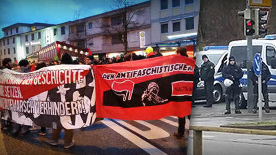 Laut Polizeiangaben ist es am 23. Februar zu 16 Identitätsfeststellungen im Rahmen der Demonstrationen von Linken gegen Rechte gekommen. Alle der vorübergehnd Festgehaltenten waren aber schon am Abend wieder auf freien Fuß gelassen worden. Zwölf Strafanzeigen wurden außerdem wegen Sachbeschädigung, Beleidigung, Körperverletzung und Verstoßes gegen das Waffen- bzw. das Versammlungsgesetz gestellt. Auf Seiten der Polizei sind neun Beamte leicht verletzt worden. Unter anderem durch Pfefferspray-Attacken, einen Schlag auf das Handgelenk, einen Tritt in denUnterleib, einenSteinwurf gegen den Hals und einen Stockschlag auf die Hand.