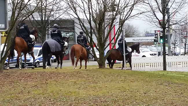 17.10 Uhr: Vier berittene Polizisten treffen am Wartberg ein. Chef der Pforzheimer Stabstelle Prävention Wolfgang Schick spricht von einem sehr effektiven Mittel, falls es im Falle einer Eskalation dazu kommen sollte, dass eine Gruppierung aufgelöst werden müsste. Unterdessen sind 300 Besucher bei der Gedenkfeier auf dem Pforzheimer Hauptfriedhof gewesen.