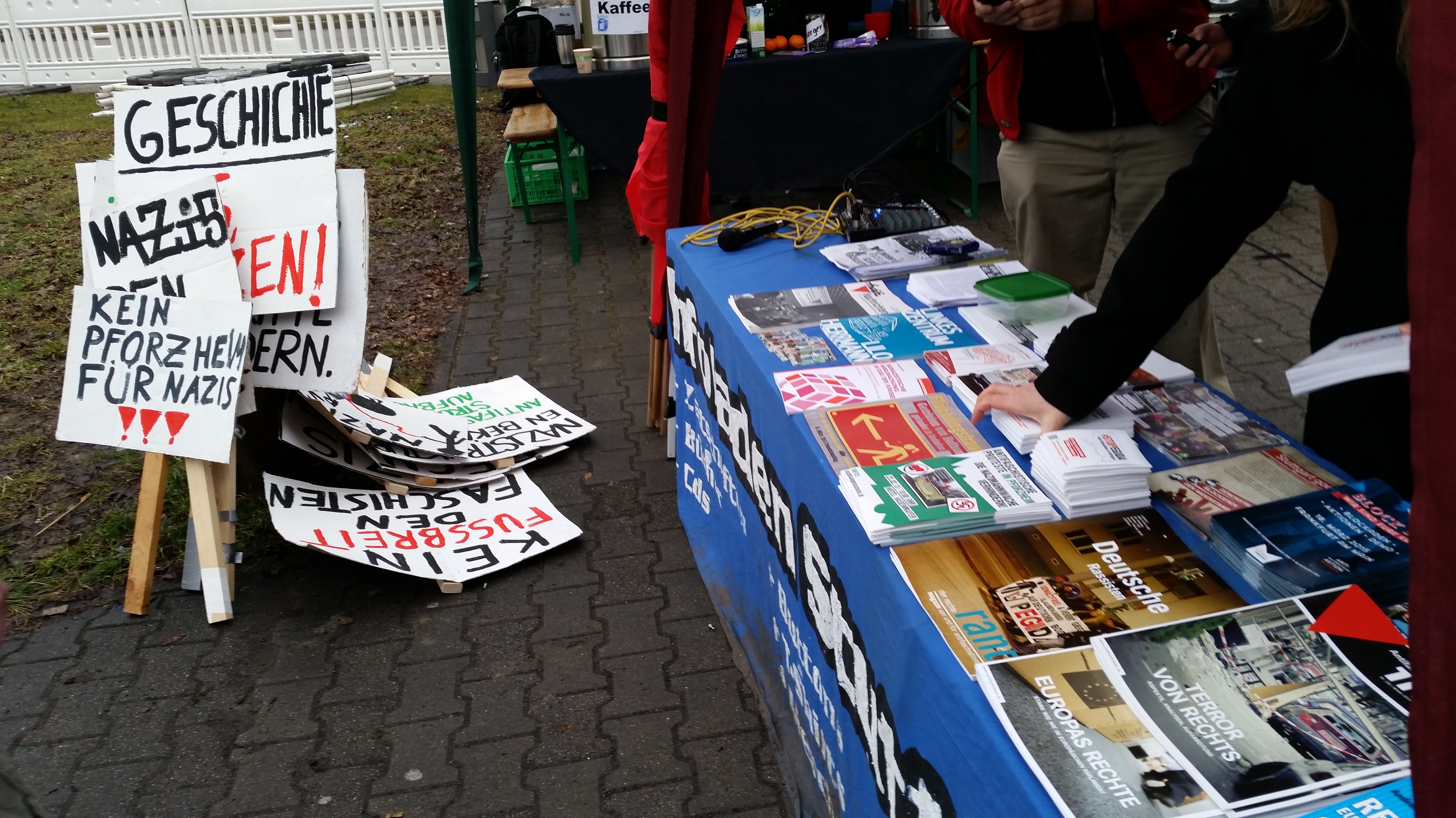 16.25 Uhr: Ein kleines Grüppchen von acht bis neun Leuten der Linken hat einen Plakatstand aufgebaut. Auf den Plakaten ist zu lesen „Fackeln aus“ oder auch „Nicht lange fackeln“. Polizeipräsident Freisleben bespricht sich aktuell mit dem Anti-Konfliktteam. Der PZ sagte er: „Wir sind vorbereitet und wir werden sehen, wie die etwas andere Strategie ausgeht.“ Das Sicherheitskonzept wurde überarbeitet: „Im vergangenen Jahr haben wir versucht, die Nordstadt komplett abzuriegeln“, sagt Pressesprecher Frank Otruba. Doch dies habe viele Kräfte gebunden – und es gelang Gegendemonstranten dennoch, auf den Wartberg vorzudringen. Heute werden die Einsatzkräfte in der Näher der rechtsextremen Kundgebung platziert.