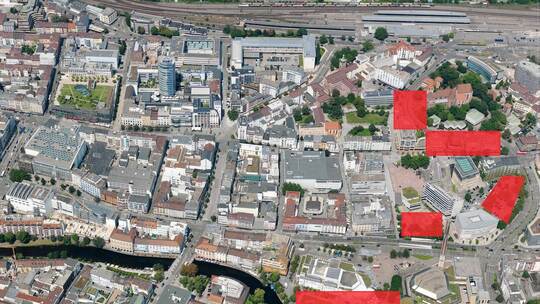 Pforzheims Innenstadt: In den rot gekennzeichneten Gebieten könnte sich die City Ost bald entscheidend verändern.