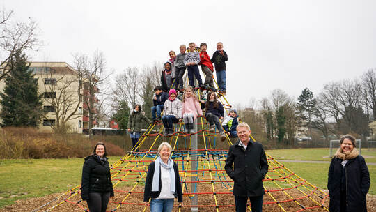 Unterstützt wurden sie von Schülerinnen und Schülern der Klasse 2A, die das Spielgerät mit ihrer fachlichen Expertise eingehend auf seine Klettertauglichkeit prüften, heißt es in der Mitteilung:. Die Schule hatte das Klettergerüst mit ausgesucht, da insbesondere das Klettern für die Kinder interessant und wichtig ist.