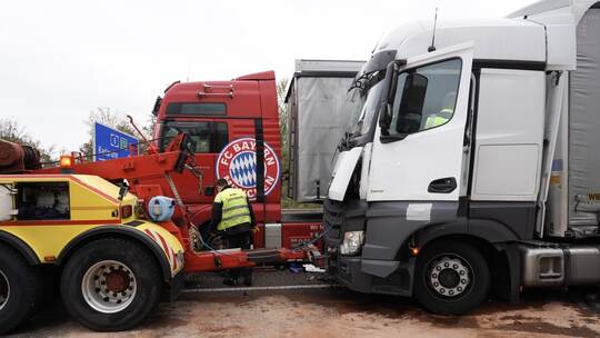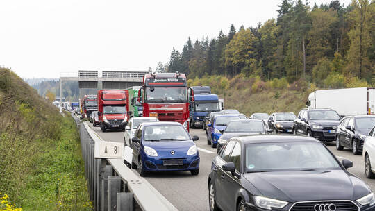 Crash mit zwei Lastwagen und Auto: A8 einseitig voll gesperrt