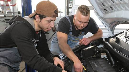 Zum Autohaus Gerstel kam der syrische Flüchtling durch Margarete Schaefer, Leiterin der Johanna-Wittum-Schule. „Es war ein einfaches Gespräch bei der Handwerkskammer, als Frau Schaefer mit einigen arbeitsuchenden Flüchtlingen auf mich zu kam“, sagt Timo Gerstel. „Nach einer kurzen Verständigung haben wir Shervan dann sofort bei uns als Praktikant eingestellt – und er schlägt sich herausragend gut“, lobt der Autohausinhaber. Anfänglich seien einige Mitarbeiter skeptisch gewesen, wie sich ein Neuling mit wenig Deutschkenntnissen anstellen würde. Das habe sich grundlegend geändert. „Er packt mit an, wo er kann, die Kollegen sind begeistert von ihm“, freut sich Gerstel. Und: „Wenn er in seinem Deutschkurs weitere Fortschritte macht, werden wir ihn als Auszubildenden einstellen.“ Shervan strahlt bei diesen Worten.