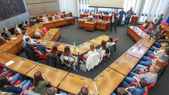 Bereits zum vierten Mal findet der eigens für die Azubis veranstalteter Gipfel zu europapolitischen Themen statt. Während es in den vergangenen Jahren um Fragen wie die der Osterweiterung ging, habe man bei der diesjährigen Auflage bewusst das Thema Flüchtlingspolitik gewählt, wie Anna-Lena Beilschmidt, Leiterin der Abteilung Europa und Städtepartnerschaft, erklärt. „Auf europäischer Ebene werden viele Entscheidungen gefällt, die direkten Einfluss auf die kommunale Ebene und somit den Berufsalltag der Auszubildenden haben“, so Beilschmidt. Das von der Stadt Pforzheim in Kooperation mit der Landeszentrale für politische Bildung organisierte und von CIVIC, einem Düsseldorfer Institut für politische Bildung, konzipierte Rollenspiel, soll die Europapolitik für die angehenden Mitarbeiter nachvollziehbarer machen.