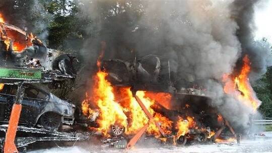 [Video] Brennender Autolaster legt Autobahn lahm [Bildergalerie] Autolaster steht in Flammen