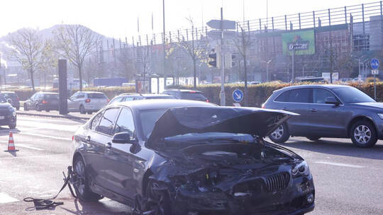 Abbiegeunfall: BMW knallt auf B10 in Pforzheim in Anhänger