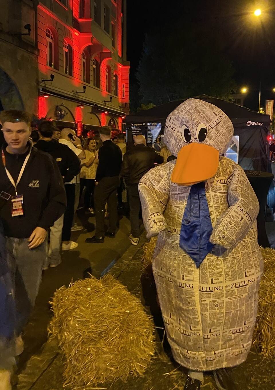 So mischte sich Zeitungs-Maskottchen Paula Print unters Partyvolk und verteilte kleine Geschenke an die Besucher der Barparade. Für alle PZ-Abonnenten hatte die Ente zudem Dönergutscheine für nur einen Euro von „Class 49“ an der Östlichen in Pforzheim mit im Gepäck. Obendrein hatte die PZ im „Chillers“ an der Bahnhofstraße eine Lounge eingerichtet.