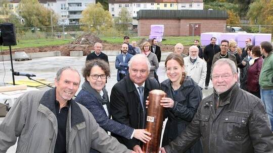 Pforzheim. Die Zeitkapsel ist einbetoniert, bis nächsten Herbst soll die Kita mit Campus zwischen Karl-Friedrich-Schule und Enz startklar sein: Fünf Gruppen mit insgesamt 80 Kindern sollen darin integriert werden. 2,8 Millionen Euro wird das Bauwerk kosten.