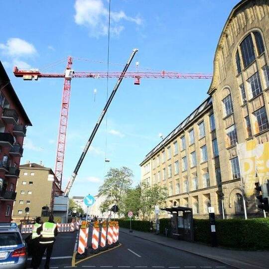 {element}{element}An der Holzgartenstraße gegenüber der Hochschule für Gestaltung soll nach dem Abriss einer Kindertagesstätte ein Neubau entstehen. Der dort aufgestellte Baukran hätte im Falle eines Sturzes nicht nur mit voller Wucht auf die Wohnhäuser in Richtung Pflügerstraße fallen, sondern sein abknickender Ausleger auch in Richtung Holzgartenstraße und Hochschule stürzen können. In jedem Fall wären Menschenleben in Gefahr geraten, weshalb die Feuerwehr Anwohner und Studenten evakuieren musste, während die Polizei Lautsprecherdurchsagen machte, in denen sie andere Nachbarn darum bat, im Inneren ihrer Wohnungen zu bleiben, um nicht durch umherfliegende Trümmerteile nach einem Absturz gefährdet zu werden.