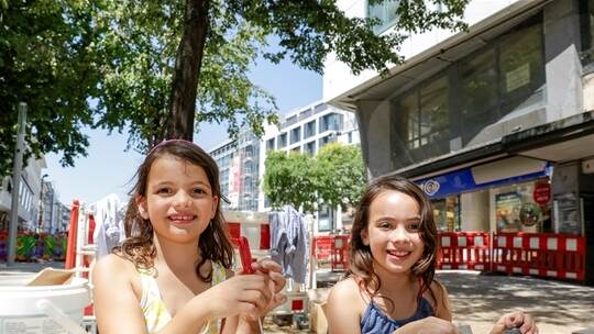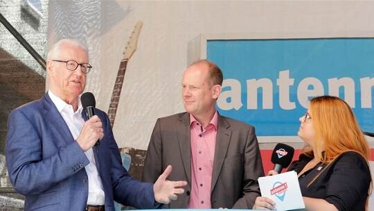 Auf der Bühne hatten um 13 Uhr auch der Erste Bürgermeister Dirk Büscher und Einzelhandelssprecher Horst Lenk das Fest eröffnet und die Fragen von Moderatorin Saskia Hintzen zur Baustelle beantwortet. „Jede Veranstaltung ist wichtig für die Innenstadt“, betonte Lenk, der sich darüber freute, dass bereits morgens einiges in den Läden los gewesen war. „Die Innenstadt ist das Herz der Stadt und ihre Visitenkarte“, betonte Büscher. Diese gelte es nun attraktiver zu gestalten. Und zwar mit Hilfe des Bundes, der 90 Prozent der Kosten übernehme. Von einer „unglaublich wichtigen Aufwertung, die überfällig ist“, sprach Lenk. „Es hat vier Oberbürgermeister benötigt, um zur neuen Fußgängerzone zu kommen“, sagte er und dankte vor allem dem ehemaligen OB Gert Hager. Es sei deshalb schlimm, dass auf dem neuen Belag schon jetzt Kaugummiflecken und Verschmutzungen zu sehen seien. „Aber wir werden das hinkriegen“, versprach er. Denn die Stadtverwaltung werde die Platten immer wieder säubern. Auch von den Verunreinigungen durch die umstehenden Linden, die einigen Besuchern bereits unangenehm aufgefallen waren. Das Sommerfest läutete die Halbzeit der Baustelle ein. Die Arbeiten lägen sowohl im Zeit- als auch im Kostenrahmen, sagte Büscher. Ziel sei es, im November fertig zu sein, sodass Weihnachtsmarkt, City on Ice und der Mittelaltermarkt ungehindert stattfinden könnten und dem Weihnachtsgeschäft der Einzelhändler nichts im Wege stehe. Schlussendlich sollen dann auch noch Poller an den Zufahrten installiert werden, um Verkehrssünder endgültig aus der Innenstadt zu verbannen, sodass die Fußgängerzone ganz jenen gehört, für die sie bestimmt ist: den Fußgängern.