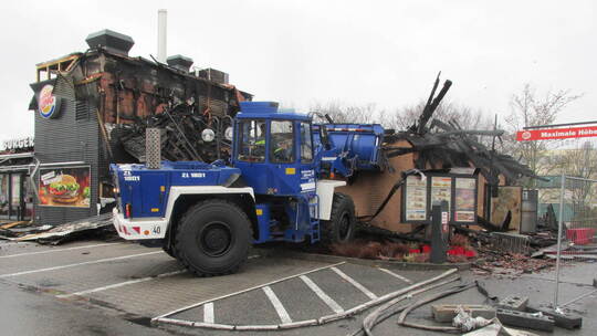Und was ist mit den Mitarbeitern? „Burger King“ schreibt in einer Stellungnahme: „Für die Übergangsphase wird der Franchisenehmer an einer entsprechenden Lösung arbeiten.“ Eigene Hilfsangebote nennt das Unternehmen nicht. Der Pächter geht davon aus, dass die Versicherung für die Fortzahlung der Löhne aufkommt. Er selbst möchte sein Lokal so schnell wie möglich wieder eröffnen. Eventuell sogar schon in zwei Monaten, stellt er in Aussicht. Der Bau inklusive Fundament dauere gerade einmal zwei Wochen. Sobald alles freigegeben ist, will er mit den Abrissarbeiten beginnen.