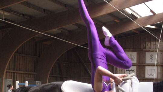 Pforzheim. Voltigieren ist eine Sportart. Beim Voltigieren turnt man auf dem Pferd. Bei einer Kür ist man entweder alleine auf dem Pferd oder mit einem Partner. In höheren Klassen ist man auch mal zu dritt auf dem Pferd. Bei einer Pflicht ist man immer alleine auf dem Pferd. Grundsitz, Fahne, Mühle, Stütz, Stehen, Schere, Knien und Flanke sind Pflichtübungen, die jeder Voltigierer turnen muss.