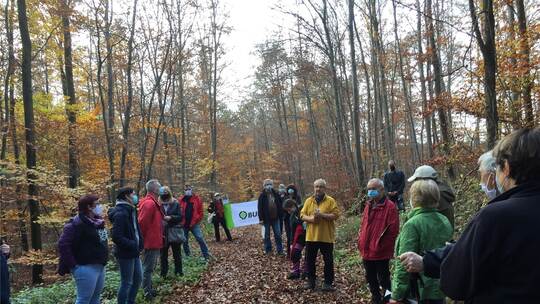 Pforzheim. Der Gemeinderat wird am 24. November über die künftige Gewerbeflächenentwicklung der Stadt entscheiden. Bei der Abstimmung geht es um die Gewerbeflächenplanungen in den Gebieten Klapfenhardt nördlich der Autobahnanschlussstelle Pforzheim-West und Ochsenwäldle westlich der Autobahnanschlussstelle Pforzheim-Süd. Am Sonntagmittag kamen auf Einladung des BUND Nordschwarzwald rund 100 Personen zu einem gemeinsamen Spaziergang durch das Ochsenwäldle zusammen.