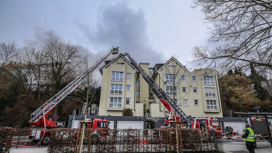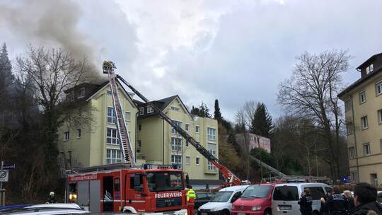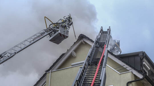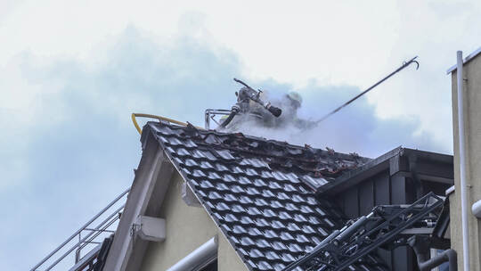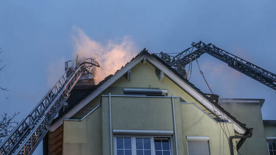 Ein Bewohner hatte von der Straße aus gesehen, dass starker Rauch aus dem Dachgeschoss der einen Seite des Gebäudekomplexes aufsteigt. Der Qualm kam aus einer Deckenluke zum Dachspitzboden und so warnte er sofort die Hausbewohner und verständigte die Feuerwehr. Um 16.15 ging in der Integrierten Leitstelle der erste Notruf über den Brand ein. Schon auf der Anfahrt wurden aufgrund der starken Rauchentwicklung weitere Kräfte nachgefordert. Im weiteren Verlauf kämpften mehrere Trupps im Innenangriff sowie über zwei Drehleitern von außen gegen die Flammen. Das Feuer fraß sich schnell durch die Decke in die Dachkonstruktion. Das Dach musste großflächig geöffnet werden, um die versteckten Glutnester zu erreichen.