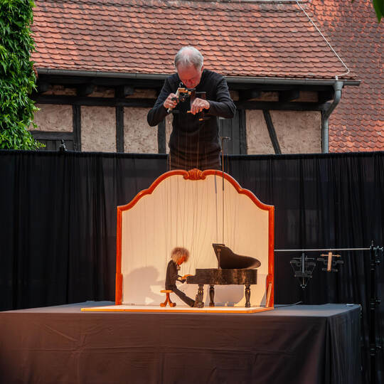 Livemusik im Figurentheater Raphael Mürle unter Bäumen