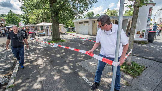 Mess-Besucher brauchen keine Sorgen zu haben: Außerhalb des abgesperrten Bereichs am Rande des Messplatzes geht die Mess ungehindert weiter.
