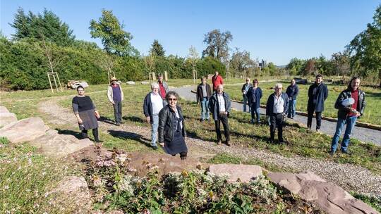 Pforzheim-Büchenbronn. Zwischen Obstbäumen, Bachlauf, Sandstein, Holz und Blumen liegen sie, die insgesamt 555 Gräber des neuen, naturnahen Grabfelds auf dem Friedhof Büchenbronn. Eine „in Deutschland einzigartige“ Anlage, wie Friedhofsgärtner Christof Hilligardt sagt, der die 1325 Quadratmeter große Anlage auf dem Büchenbronner Friedhof maßgeblich mitgeplant hat.