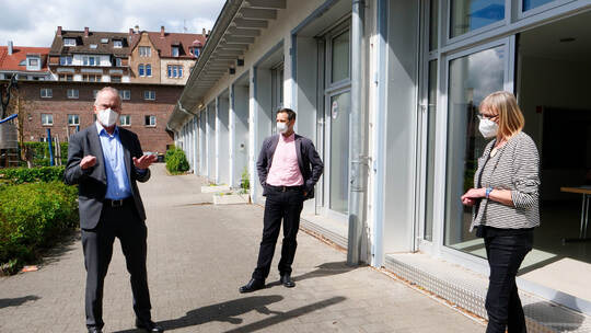Pforzheims Sozialbürgermeister Frank Fillbrunn und Jugend- und Sozialamtsleiter Joachim Hülsmann haben sich vor Ort ein Bild von der Impfaktion gemacht. "Wir brauchen solche Sonderaktionen in den Sozialräumen. Zum einen können wir so Menschen erreichen, die vielleicht sonst nicht so gut in der Lage wären, sich selbst um einen Impftermin zu kümmern", erläutert Fillbrunn, "zum anderen erhalten die Impflinge auf diesem Weg eine konkrete Hilfestellung direkt in den Quartieren."
