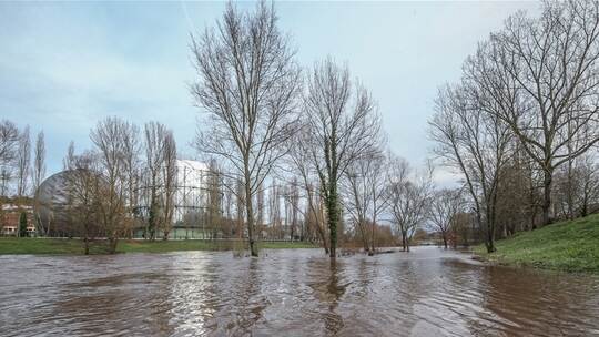 „Wenn ich aus dem Büro schaue, sieht das schon gewaltig aus“, sagt Feuerwehr-Vize Lobermann, doch die Lage sei „relativ unproblematisch“. Schon am Freitagvormittag sinken die Pegel langsam wieder, die Prognosen gehen für die kommenden Tage von einem weiteren deutlichen Rückgang aus. Einsätze, etwa wegen vollgelaufener Keller, habe es für die Feuerwehr nicht gegeben, berichtet Lobermann und betont: „Wir sind jeden Tag gut vorbereitet.“ Es gebe ein Lager mit Sandsäcken, eine Sandsackfüllanlage und natürlich auch Sand. All das muss nicht genutzt, wohl aber ein Maßnahmenkatalog abgearbeitet werden, den das Grünflächen- und Tiefbauamt für solche Fälle parat hat.