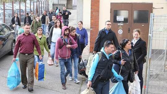 Müde Gesichter, dennoch huscht über einige ein Lächeln, als das Thales-Gebäude an der Ostendstraße in Sicht kommt. Die 55 Männer, Frauen und Kinder laufen zu Fuß mit Plastiktüten oder Rucksäcken über das ehemalige Firmengelände, das ein Sicherheitsdienst mit sechs Mann rund um die Uhr bewacht. An der Schranke kontrollieren die Männer, wer herein möchte. Kameras überwachen das Gelände zusätzlich. Die meisten Flüchtlinge kommen aus dem Irak, viele aus Syrien und auch aus Afghanistan.