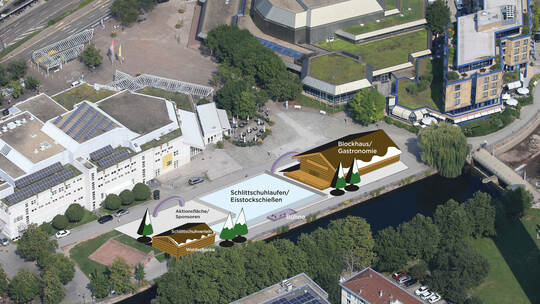 Pforzheim. So also soll sie aussehen die neue „Pforzheimer Winterwelt“. Als Nachfolgeattraktion für „City on Ice“ auf dem Marktplatz können sich in diesem Advent Schlittschuhläufer auf dem Waisenhausplatz am Enzufer vergnügen.