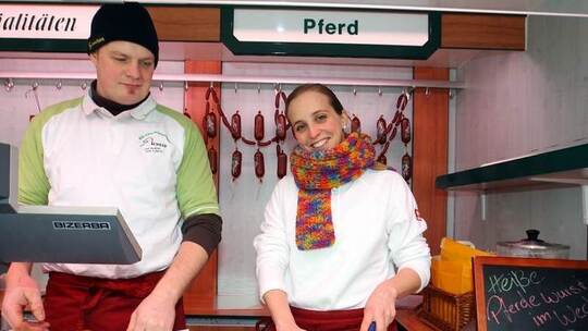 Stolz sein kann er auch auf seinen Nachfolger: Enrico Pauciullo, Pferde- und Wildmetzger auch er. Nur noch selten steht er selbst in seinem Wagen am östlichen Ende des Bauernmarkts.