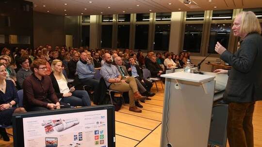 In seinem Vortrag versuchte Georg Milzner, Psychologe und Psychotherapeut, einige Vorurteile über Handys und Computer zu entkräften. Zum Beispiel, dass Zocken gewalttätig macht. Falsch, so die Schlussfolgerung des 54-Jährigen: Die Gewaltrate im öffentlichen Raum sinke sogar, seitdem Gewaltspiele öffentlich zugänglich seien. Beim Thema Sucht wurde Milzner deutlich: Man könne eine Sucht nicht allein über die Dosis definieren, es gehöre noch ein Gewöhnungseffekt – und dadurch eine Steigerung der Dosis – sowie eine Vernachlässigung anderer Lebensweisen dazu. Auch den Vorwurf, dass Videospiele dumm machen, wollte der Psychologe nicht so stehenlassen: Der IQ von Jugendlichen gehe seit Jahren nach oben. In allen Spielen würden außerdem räumliche Orientierung, Systemüberblick und strategisches Denken gefördert.