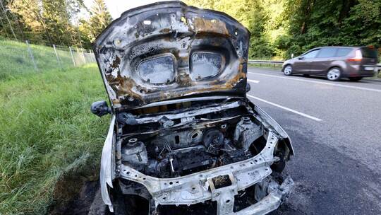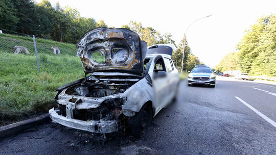 Der Polizei zufolge konnte sich der Fahrer jedoch noch rechtzeitig aus dem Auto retten, verletzt wurde demnach niemand. Das Fahrzeug brannte allerdings komplett aus.