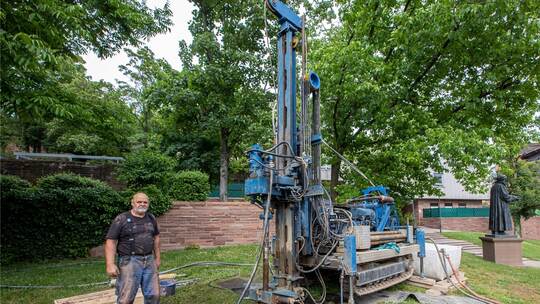 Pforzheim. Es geht voran in Sachen Schlossberghöfe: Nach dem es bereits im März erste Bohrungen im Rathaushof gab, geht es nun am Schlossberg selbst weiter, genauer zwischen der Melanchton-Statue und dem Lutherhaus.