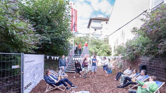 Pforzheim. Das sonst verschlossene Tor an der Ecke Kanalstraße/Bleichstraße ist nun geöffnet und gibt den Blick frei auf einen geschützten Innenhof. Ein 64-Jähriger kann sich noch gut erinnern, wie er als Kind zwischen den Trümmern des Kellers spielte. Manuela Bäder vom Planungsamt und Stadtsanierer Reinhard Maier haben den zugewucherten Bereich freilegen lassen. Dort stehen jetzt auf einem weichen Boden Rindenmulch Holzliegen und laden zum Entspannen. Auf dem privaten Grundstück soll irgendwann einmal ein Hotel gebaut werden. Doch bis dahin darf die Stadt den Raum temporär nutzen für das Projekt „Gestalte dein Quartier“, das unter dem Motto "Aufblühende Bleichstraße" steht.