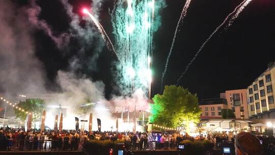 Als das Feuerwerk samt Lasershow kurz vor Mitternacht endet, gibt es für die Besucher auf dem Weg zum Ausgang kein anderes Thema als die Schönheit der perfekt aufeinander abgestimmten und zur