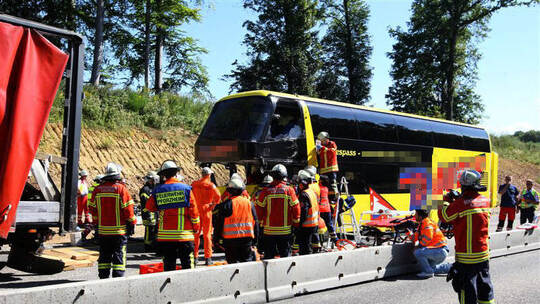 Ein Bus mit neun Jugendlichen und drei Erwachsenen an Bord kracht auf einen Sattelzug. Es gibt mehrere Verletzte und einen schwerst verletzten Fahrer, der im Bus eingeklemmt. Das heißt: Großeinsatz für die Rettungskräfte. Im Falle des Busunglücks am Montagvormittag auf der A8 war nicht nur die Autobahnpolizei vor Ort, es wurden auch 21 Rettungskräfte von DRK und ASB in 12 Fahrzeugen an den Unfallort gerufen, plus ein Rettungshubschrauber. Mit dabei: Feuerwehren aus Karlsruhe und Pforzheim und zwei Notfallseelsorger aus Pforzheim zur Betreuung der unverletzten Jugendlichen.